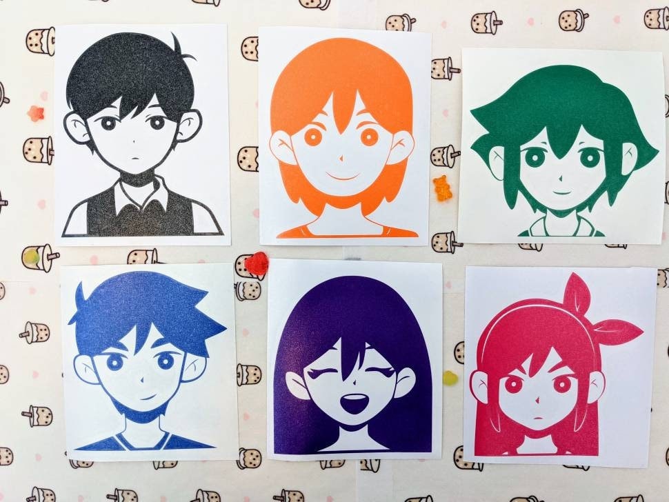 Decorate your personal space, laptop, desktop tower, car, etc with these vinyl stickers/decals of the OMORI Gang (size approx. 5 in x 3.5-4.5 in) or your favorite OMORI character(s).